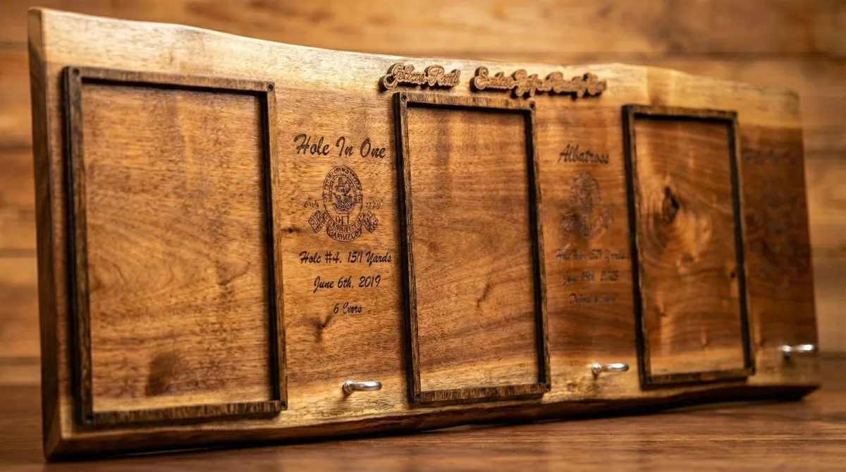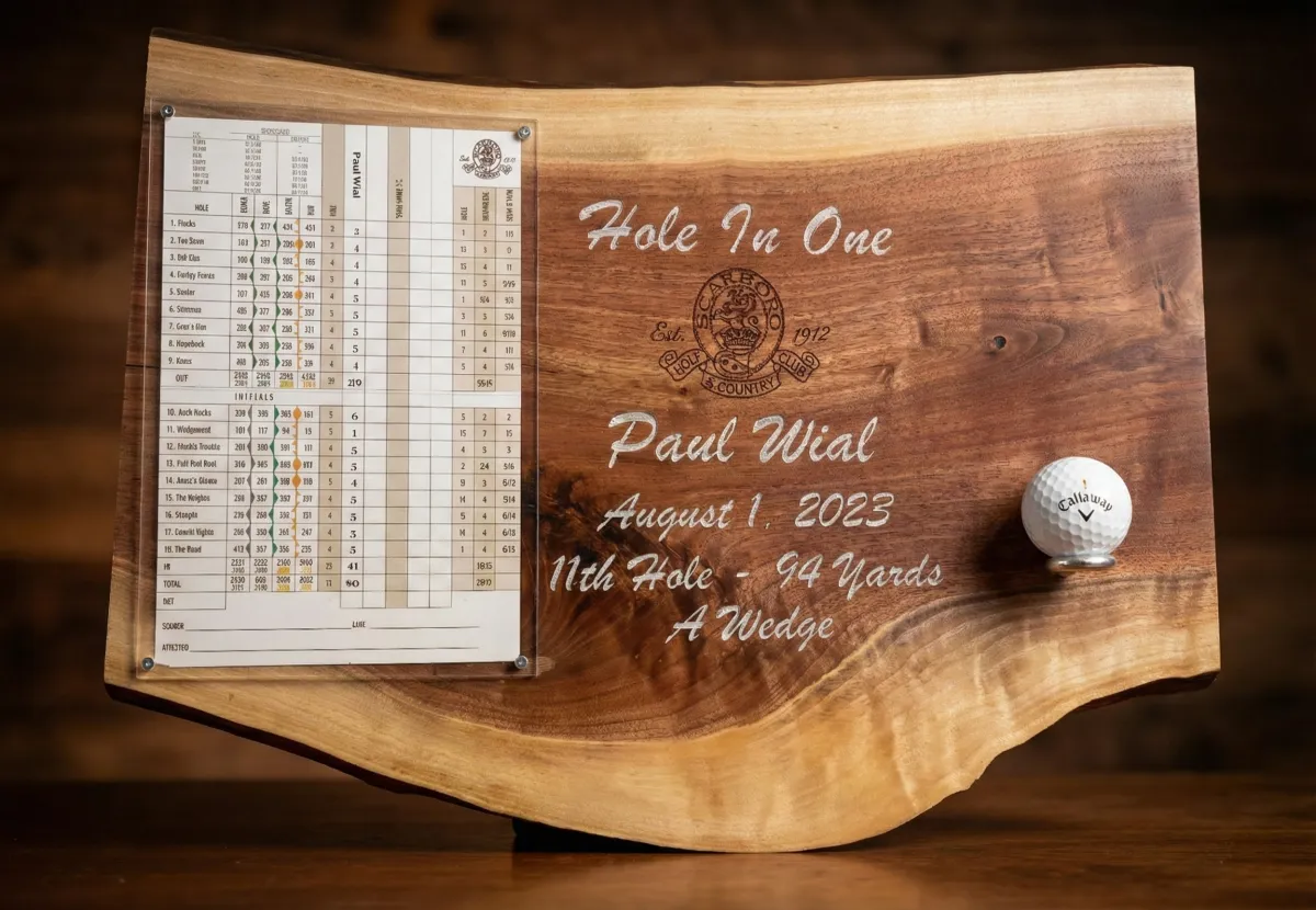 Capture and commemorate the perfect shot with distinct, laser-engraved displays that honor the player and the specific hole layout.